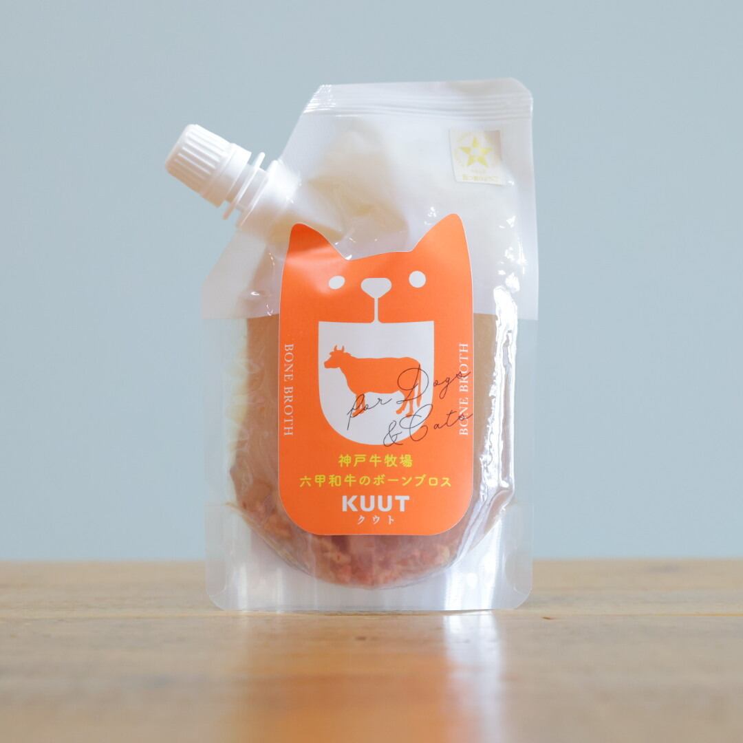 神戸の美味しい水と地産の酒粕や米の入ったこだわりの飼料を食べ清潔で静かな環境でゆったりと敬意を持って育てられた六甲和牛。その骨と六甲山系の自然が育んだ天然水を使用。KUUTのブロスの中で唯一のすじ肉入り。消化にいいよう、クタクタに煮込んだお肉をさらに手でほぐし、細かくして入れています。