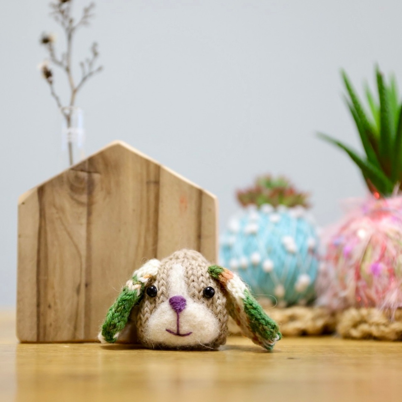上質な毛糸と羊毛フェルトでゆるイヌさんを編みました